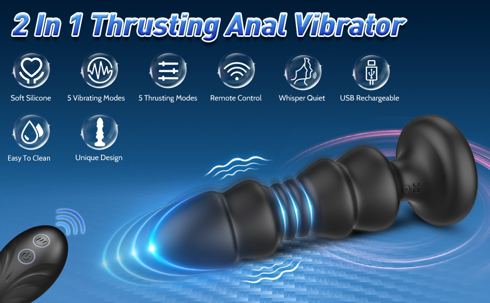 • 【2 in 1 Thrusting Anal Vibrator】This anal plug vibrator is combined a prostate massager and anal plug vibrator together for men and female. This thrusting anal sex toy is designed with two motors inside, providing 5 vibrating and 5 thrusting speeds, from gentle to wild, to stimulate your sensitive part for a unique sexual experience.