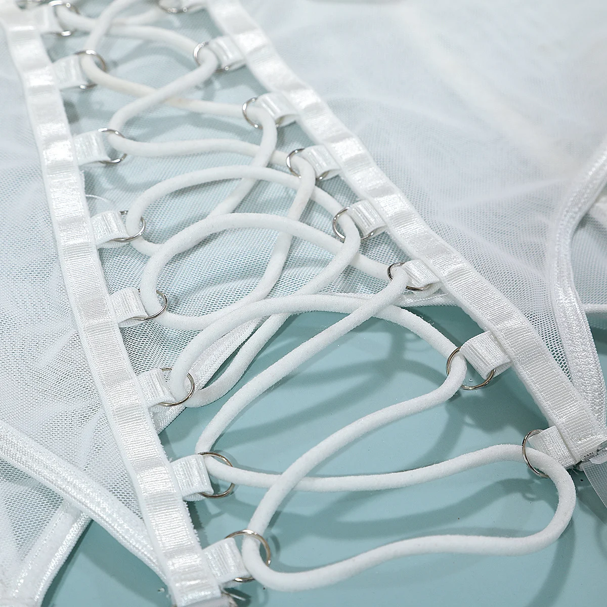 Product name Sexy Underwear Cross Tie Hollow Out Three Piece Set