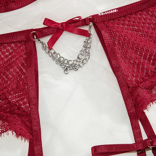 Sexy Underwear Mesh Splicing Lace Chain Butterfly Four Piece Set